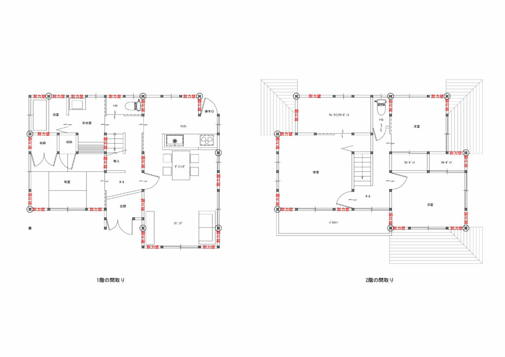 耐力壁は地震時の横方向の力に対して耐えるような働きをします。
