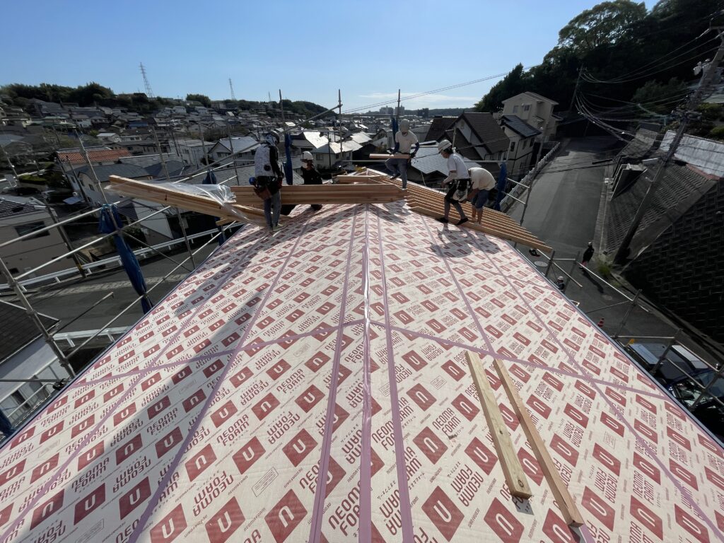 弊社の場合は当日に屋根の断熱作業を行わせていただくため、屋根を作り出すぐらいからがとても時間がかかるのです。