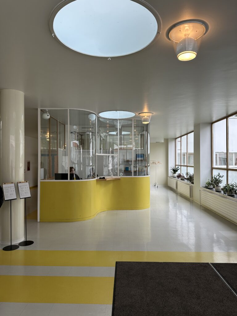 患者さんたちが元気になるようなビタミンカラーの床(アアルトは気に入らなくて塗り替えたかったらしいですが…)