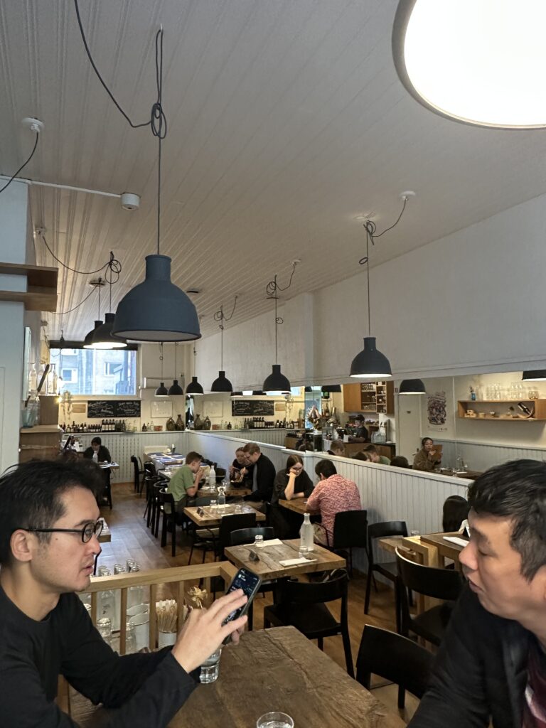 アルテックに併設している、アアルト設計の本屋さん、カフェにも立ち寄りつつ、フリーの夕食はこの3日後に閉店となる『カモメ食堂』へ足を運びました。