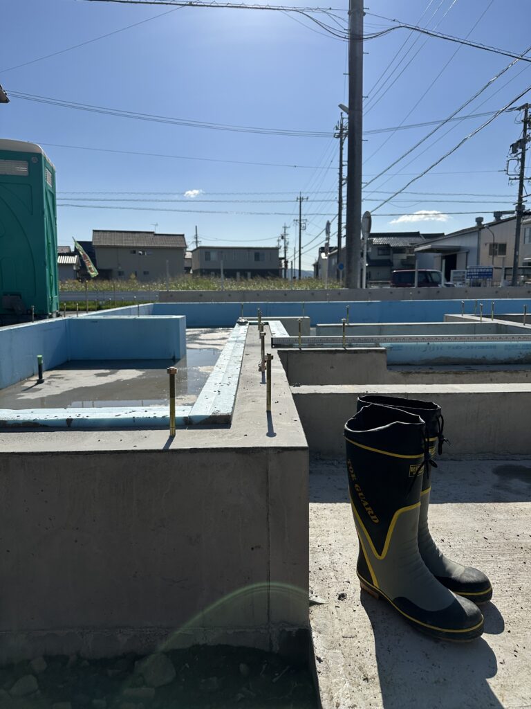 基礎工事が終了しましたので、基礎の磨き作業に行ってきました。