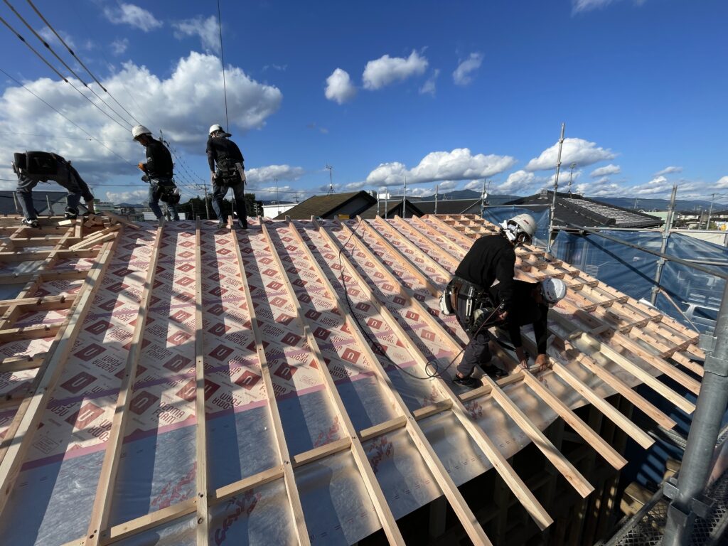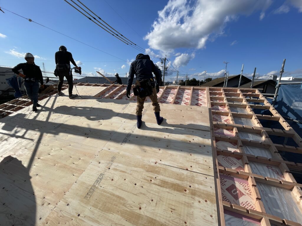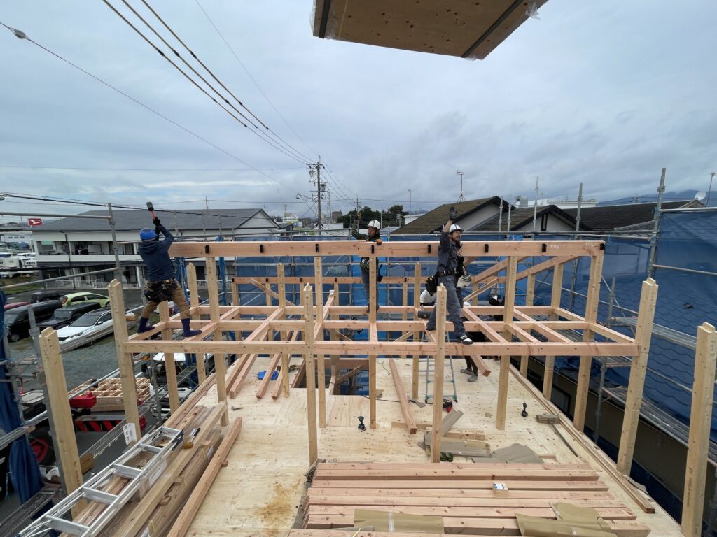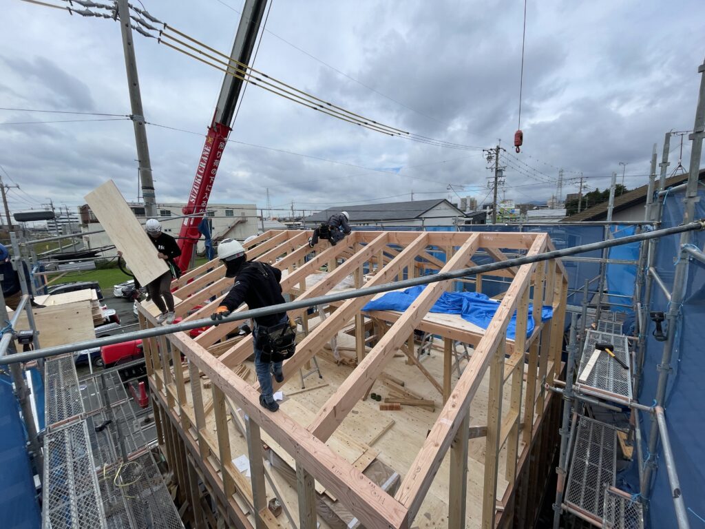 気持ちのいい秋晴れの中、上棟作業をさせていただきました。