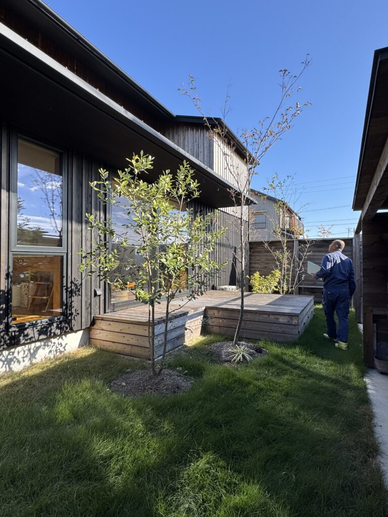 ツートンカラーのスギ板外壁は少し色が落ち着いたでしょうか。