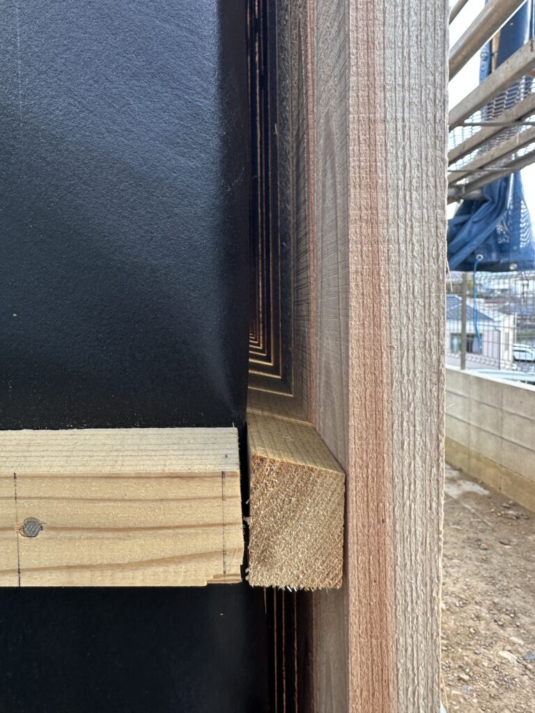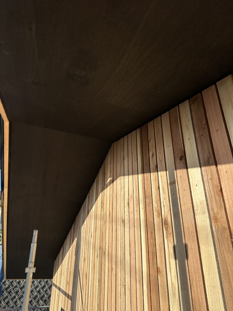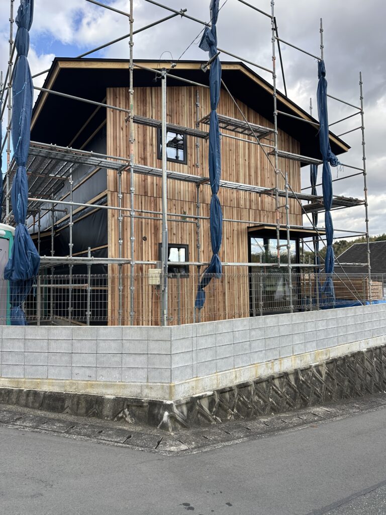 今回の外壁はお施主さまのものすごく強い要望がありましてスギ材のファサードラタン仕上げになります。