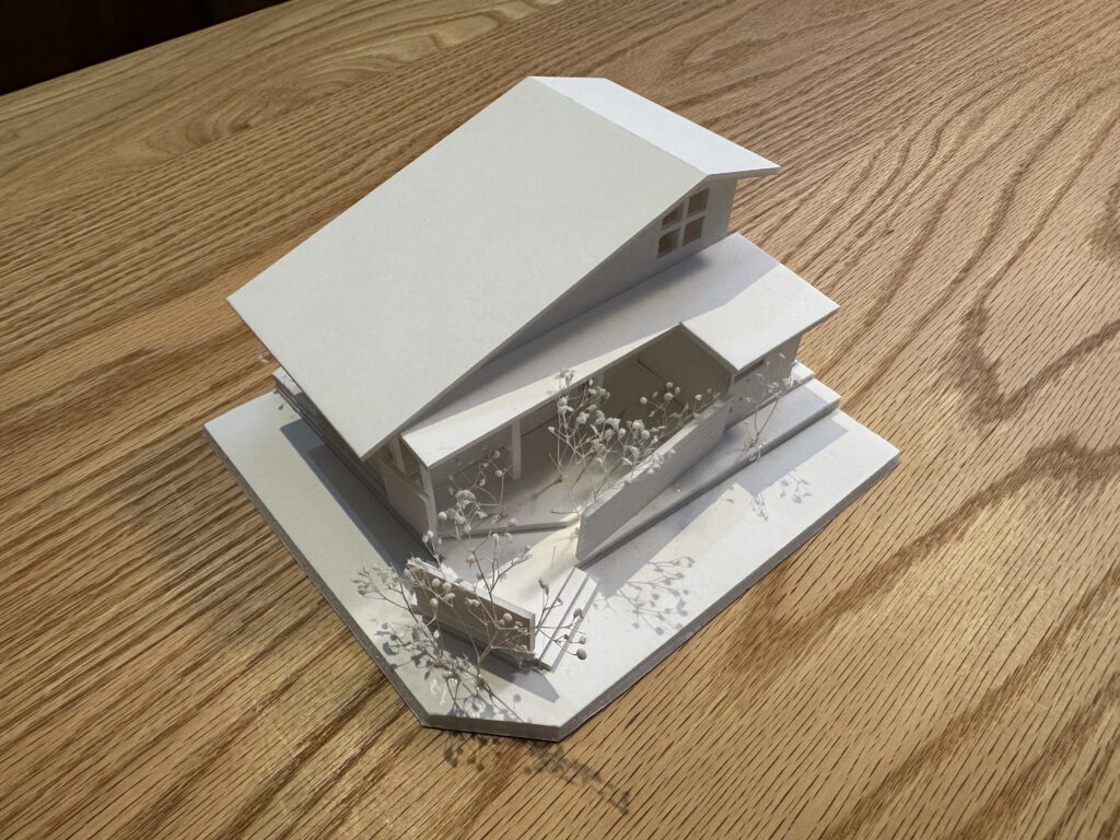 前面道路もそれなりに広く、歩道がある場所なので私の所見として道路を歩く方が見た際に威圧的にならないような魅力的な住まいが思い浮かびました。