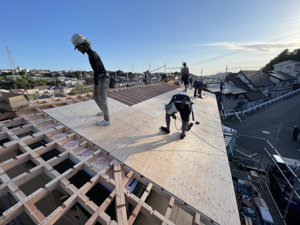 豊橋市の工務店。ニコハウス設計室代表で一級建築士の鈴木です。浜松で新築工事をさせていただいているYさま邸。秋晴れの中、先日上棟作業をさせていただきました。弊社からは1時間弱ぐらいで、少し遠方になります。