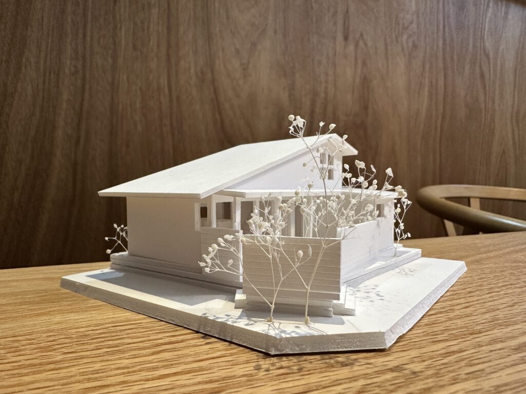 豊橋市の工務店。ニコハウス設計室代表で一級建築士の鈴木です。豊川市で新築計画中のTさま邸。土地探しから相談をいただきました。複数の候補全ての土地について私の所見(土地の周辺状況を踏まえたアドバイス)・30坪の家を仮に建てるとする場合の仮配置・駐車場の位置などを簡単な図面にしてお話しをさせていただきました。最終的に決定いただいた場所は街の顔になるような南西の角地です。前面道路もそれなりに広く、歩道がある場所なので私の所見として道路を歩く方が見た際に威圧的にならないような魅力的な住まいが思い浮かびました。