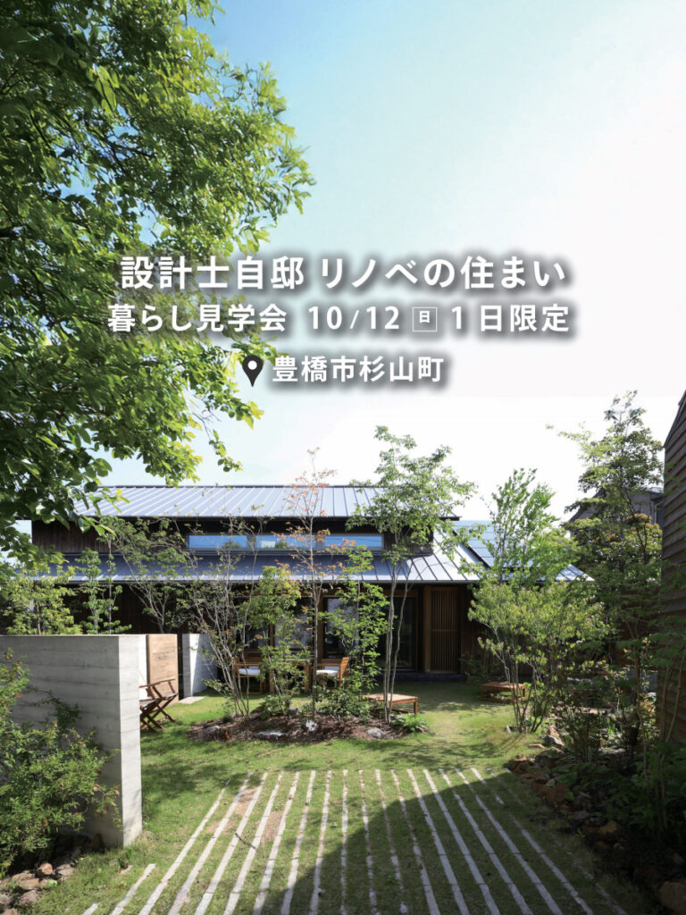 EVENTイベント情報 すべて 見学会 相談会 その他 すべて 見学会 相談会 田原市吉胡町 リノベ完成内覧会 DAY. 10.25(土)-10.26(日) 見学会 開催前 【設計士自邸 リノベの住まい】暮らし見学会 DAY. 10.12(日) 見学会 終了 小さな平屋 相談会 DAY. 常時開催 相談会 開催中 【設計士自邸】平屋の暮らし見学会 DAY. 9.27(土)-9.28(日) 見学会 終了 豊橋市野依町 新築完成内覧会のお知らせ DAY. 7.19(土)-7.20(日) 見学会 終了 ちょうど暮らしの平屋 完成内覧会のお知らせ DAY. 6.21(土)-6.22(日) 見学会 終了