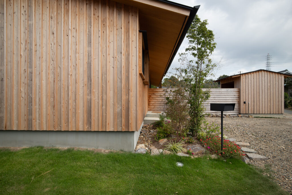 L型、くの字いろんなプランを考えましたが周りは畑や古い建物が多いこともあり風景になじむ建物をつくりたいと考え,切妻のシンプルな屋根の平屋になっています。